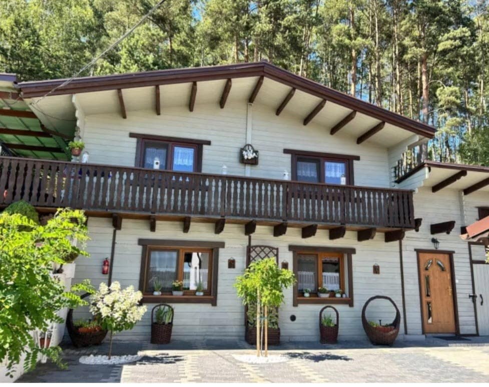Ištisus metus veikiantis , patogus 150 m ploto namas, esantis už 120 m nuo Słupinko ežero, miške, Wdzydzki kraštovaizdžio parke. Pirmame namo aukšte yra svetainė su dideliu atviru židiniu ir 20 m terasa, taip pat pilnai įrengta virtuvė. Palėpėje tarp dviejų 3 lovų miegamųjų siūlome miegamąją erdvę 2 asmenims(mėgstamiausia vaikų vieta). Augintiniams tinkami namai, visa nuosavybė yra gerai aptverta.