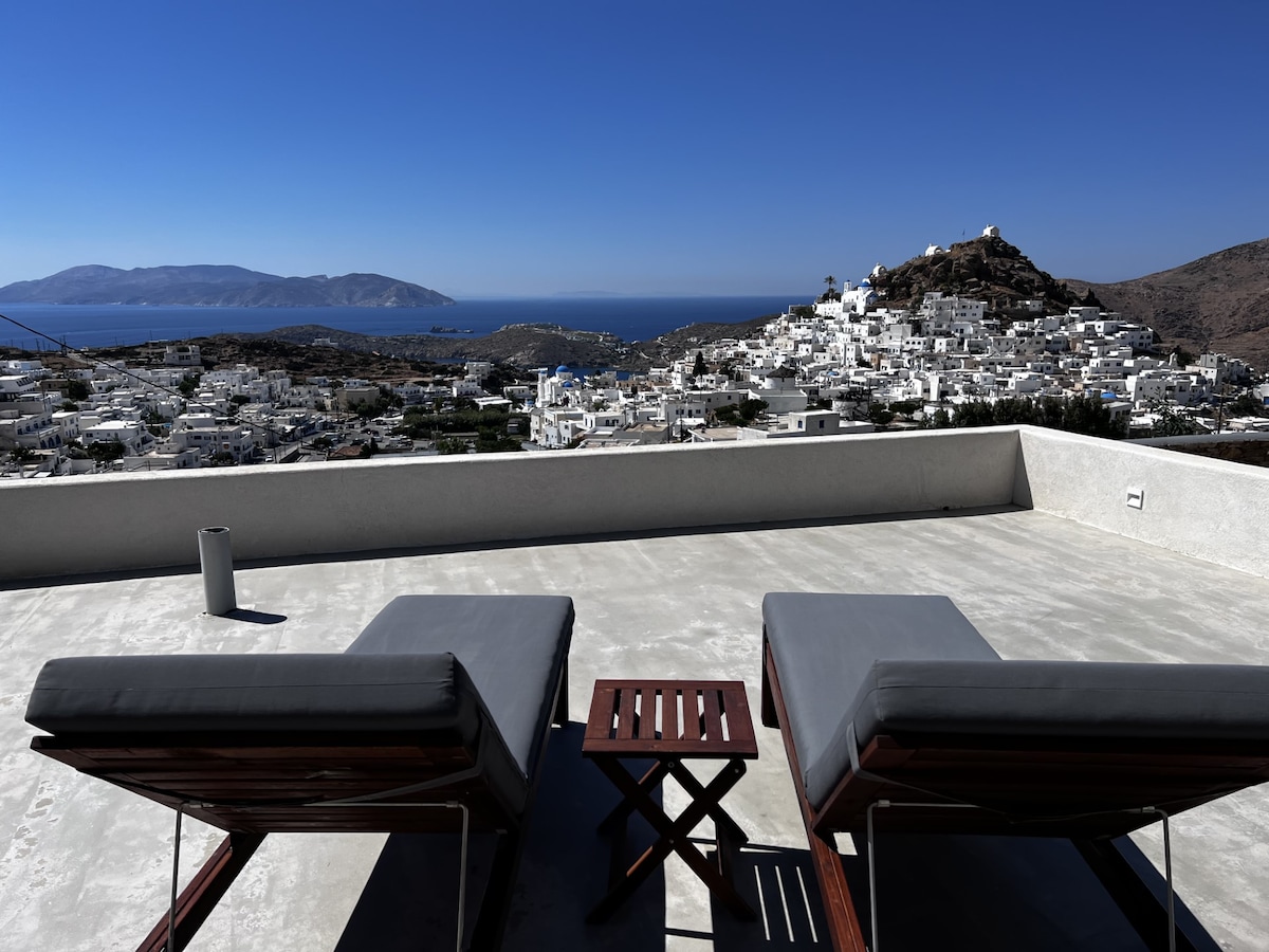 „Jūra ir saulė“ yra visiškai naujas namas, pastatytas kalno šlaite. Vos už vieno kilometro nuo garsiausio paplūdimio Milopoto saloje (200 metrų žvyrkeliu). Su dviem miegamaisiais, dviem vonios kambariais, virtuve, svetaine ir lauko baseinu. Jūra ir saulė pasklidusios visuose namo kambariuose. Mėgaukitės nuostabiu saulėlydžiu, jūros ramybe ir atraskite Ioso siaurų gatvelių grožį! Mūsų vilose galime priimti iki 16 asmenų grupes!