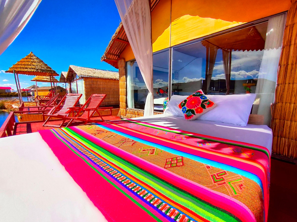 Mėgaukitės unikaliu potyriu Titikakos ežere Mėgaukitės stebuklinga naktimi mūsų plūduriuojančiame viešbutyje, iš kurio atsiveria nuostabus vaizdas į ežerą Mėgaukitės panoraminiu Titikakos ežero vaizdu iš mūsų privačios terasos Natūralus pasivažinėjimas laivu: išskirtinis potyris, kuris sujungs jus su vietine kultūra Vietinės bendruomenės ekskursijos - atraskite plūduriuojantį salos gyvenimą Laukiame jūsų!