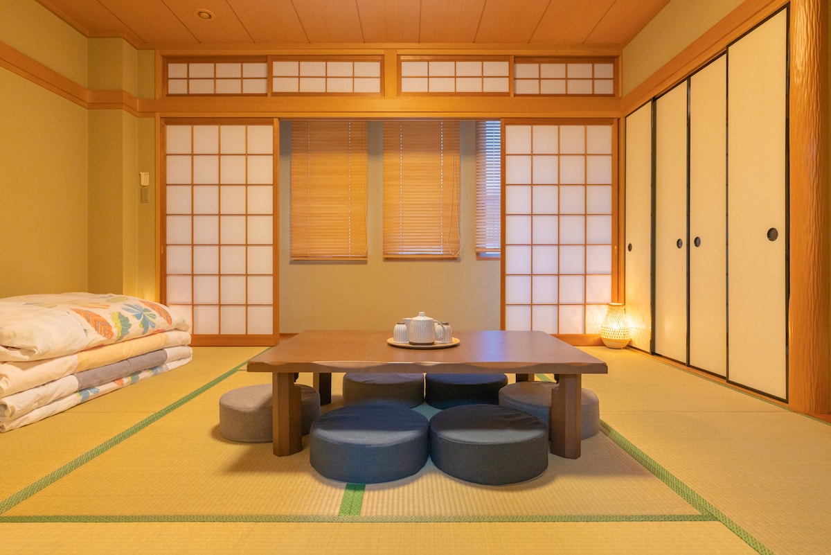 Patirkite arba savo draugus ir nuoširdų seną japonišką gyvenimą su šeima. Galite drąsiai naudotis, pvz., 12 žmonių, kurie kasa jūsų stovą, tuo pačiu metu yra renginio vakarėlis. Yra sistema virtuvė, šaldytuvas, mikrobangų krosnelė,virtuvės reikmenys, pvz., stalo įrankiai. Kadangi yra loftas, galima priimti organizaciją. Patalynė bus japoniško stiliaus. Tai senamiesčio namas, bet jau yra visas vanduo aplink renovaciją.