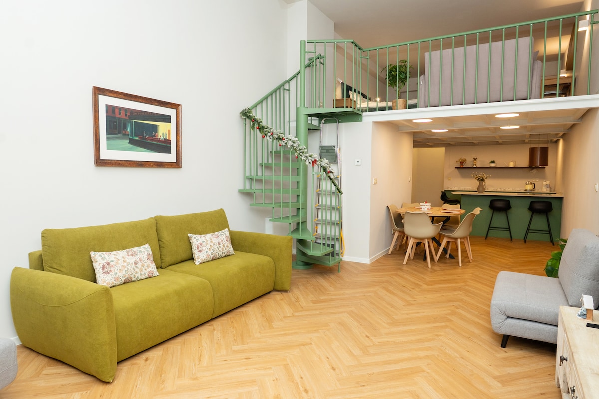 ❗Naudoti tik užsiregistravusiems svečiams. Jokio komercinio naudojimo, fotografavimo ar filmavimo. Pažeidimas = bauda❗ ⚜️ Sveiki atvykę į erdvų, stilingą loftą su unikaliomis detalėmis. Ši unikali erdvė laukia jūsų apsilankymo. ⚜️ Nemokama automobilių stovėjimo aikštelė garaže ir pilnai įrengtas butas. ⚜️ 1 aukštas: virtuvė su valgomojo zona, vonios kambarys, svetainė su židiniu. 2 aukštas: 2 dvigulės lovos ir spinta. ⚜️ Ramesnė vietovė, 10 min. automobiliu, taksi ar viešuoju transportu iki miesto centro.