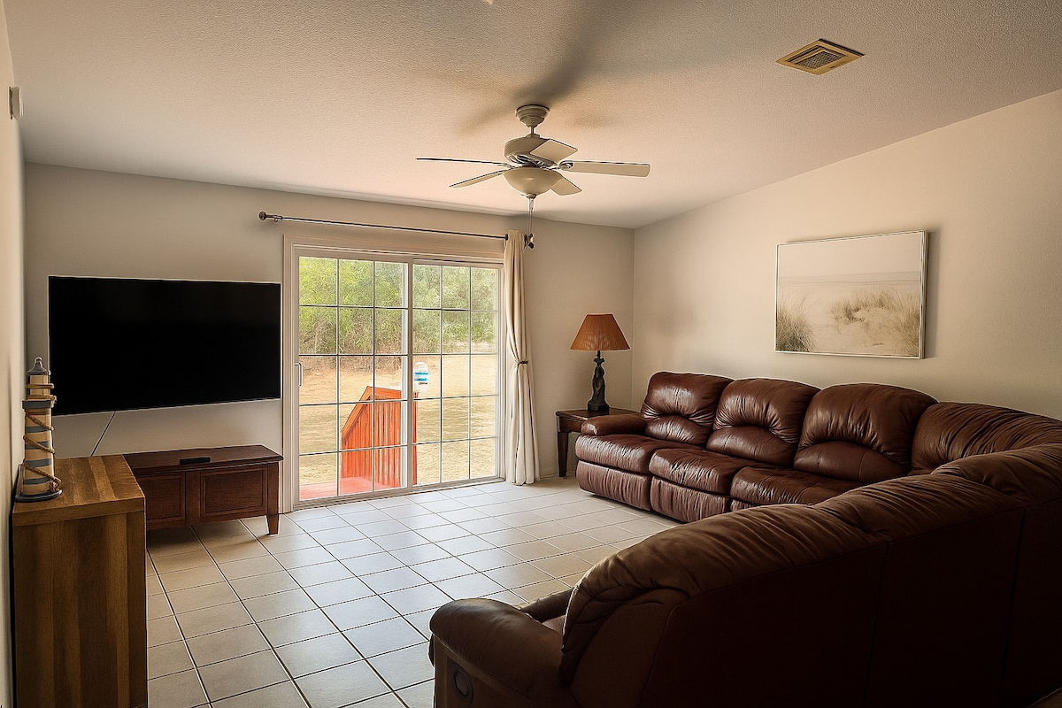 Sveiki atvykę į savo namus toli nuo namų! Įsikūrę pačioje gražaus Floridos pavasario upės regiono širdyje, mūsų namai siūlo puikų atsipalaidavimo, šeimos pramogų ir patogumo derinį. Nesvarbu, ar norite tyrinėti krištolo skaidrumo šaltinius, irkluoti vaizdingas upes, ar tiesiog atsipalaiduoti, visa tai rasite vos už kelių minučių kelio. Viduje šeimoms patiks speciali vaikų erdvė, kurioje yra žaidimų ir užsiėmimų, kad mažieji galėtų linksmintis, o tėvai atsipalaiduos ir mėgausis pilnai įrengtų namų komfortu