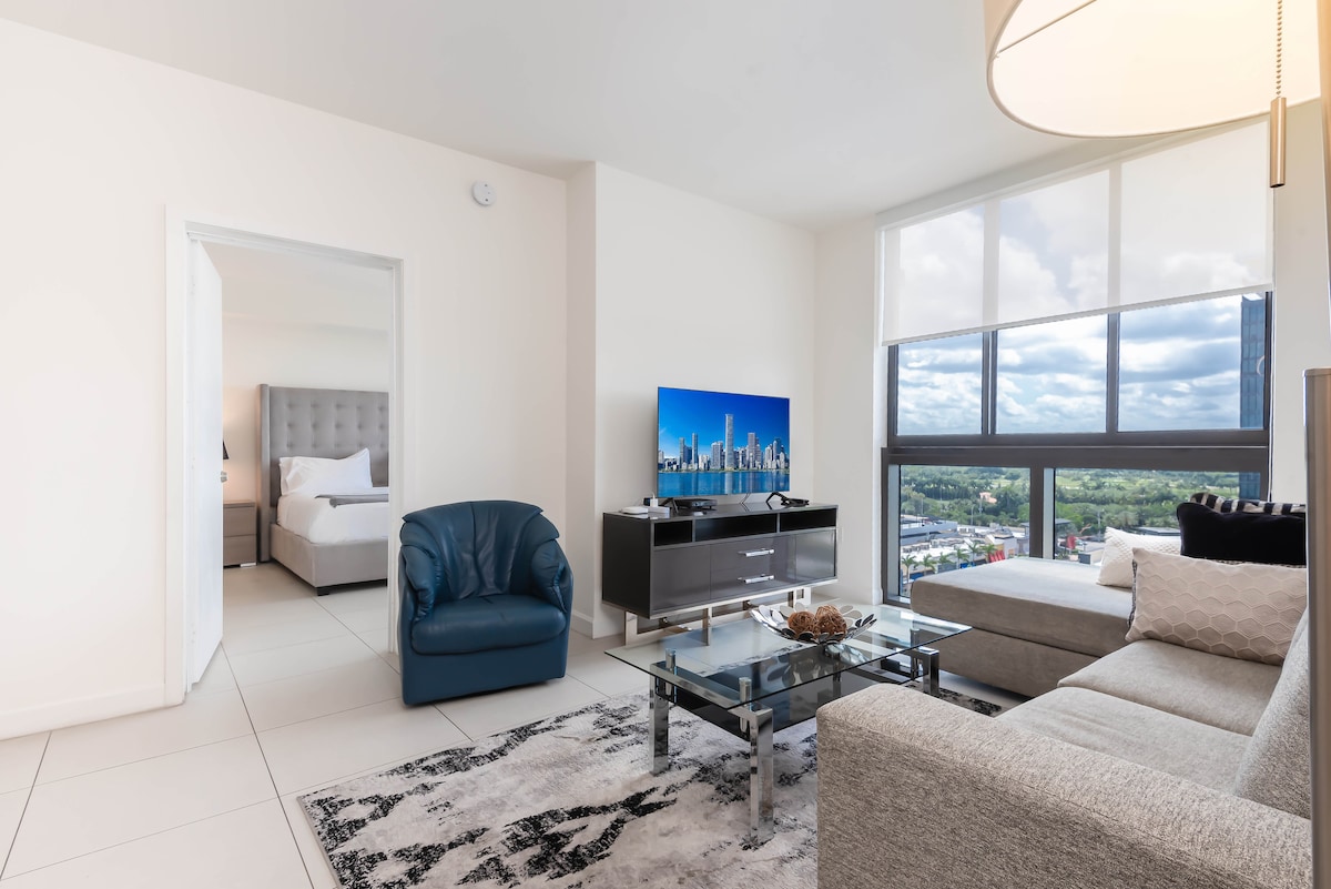 Sveiki atvykę į šį įspūdingą butą Majamio mieste, kuriame rasite išskirtinę, modernią ir saugią atmosferą! Be to, jame yra lauko terasa, todėl galėsite mėgautis Majamio oru ir gražiais saulėlydžiais🌅. Privilegijuota vieta išskirtiniame Doralo centre leis jums būti netoli restoranų ir prekybos centrų. Visa ši informacija puikiai papildys, kad galėtumėte mėgautis viešnage su draugais ir šeima.