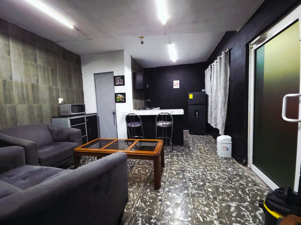 Mažas butas dviem asmenims, daugiausiai dvigulė lova, privatus vonios kambarys ir maža virtuvėlė su „Minisplit“ grindimis, išmaniuoju televizoriumi ir internetu. Butas įsikūręs tarp Juarez bulvaro ir Meksikos armijos bei Pape en Col Picasso bulvaro. Jei pageidaujate apsistoti tris ar daugiau dienų, galite paprašyti, kad už papildomą mokestį atvyktų ir išvalytų kambarį. Vietos rūkyti draudžiama. Butas yra nukreiptas į gatvę, todėl gali būti šiek tiek triukšmo. Įėjimas yra nuo 16 val., o išvykimas – nuo 12 val., atvykimo instrukcijos.