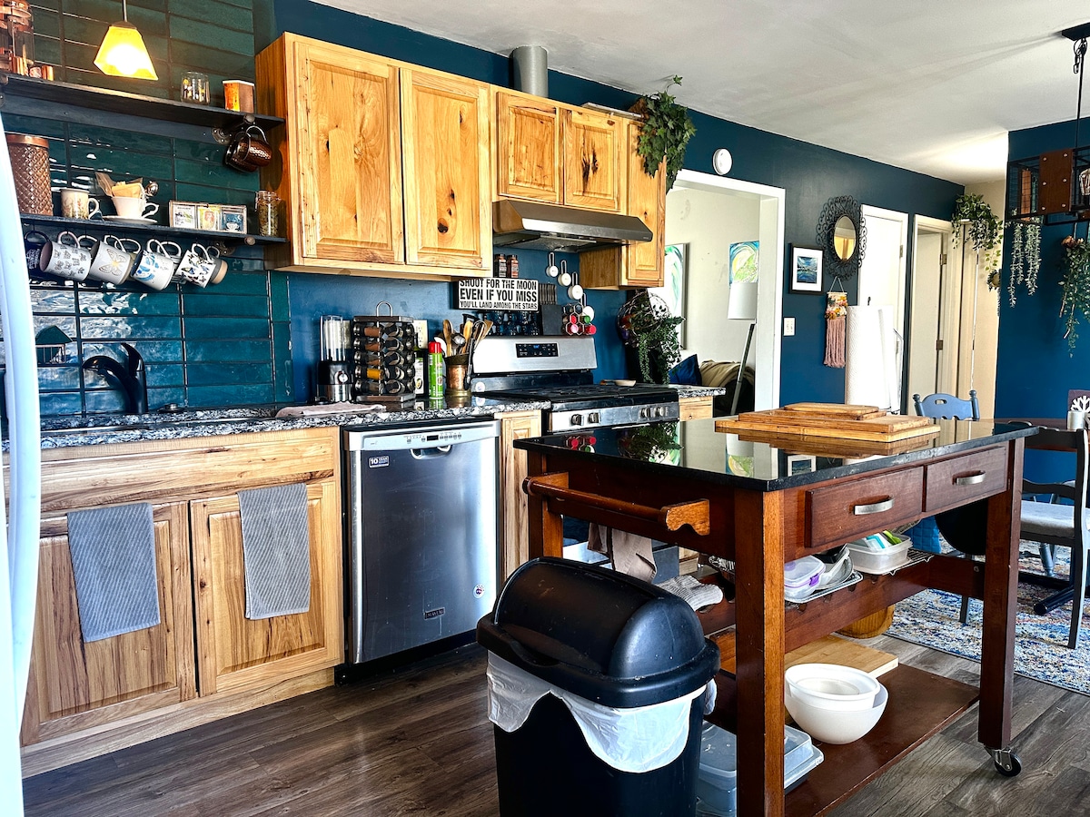 Experience the best of Kansas City in this vibrant artist’s bungalow in a culturally diverse historic neighborhood. Central location and minutes from Downtown, Crossroads Art District, River Market, Power & Light, North KC, West Bottoms, and Arrowhead Stadium. Filled with vintage charm, colorful textiles, and global décor. Enjoy the lush backyard with barrel sauna, seasonal stock tank pool, cold plunge, and firepit. End the night with cocktails in the Lucky Kitty Tiki Lounge.