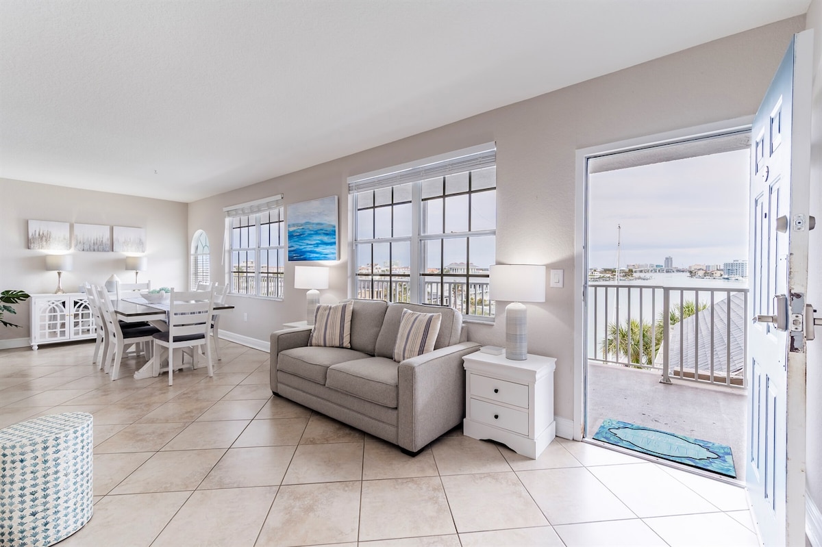Welcome to the newly remodeled condo in the Heart of Treasure Island. This bright and modern retreat is perfect for relaxing and avoiding the crowds. Perfect location for beach lovers and wildlife watchers alike with waterfront views of the canal from the living room, kitchen and bedroom windows and beautiful sunsets. Just 2 blocks or a 5 minute walk to the beautiful white sandy beach and a few feet from the canal and heated pool. Visit nearby restaurants, John's Pass Boardwalk and live music.