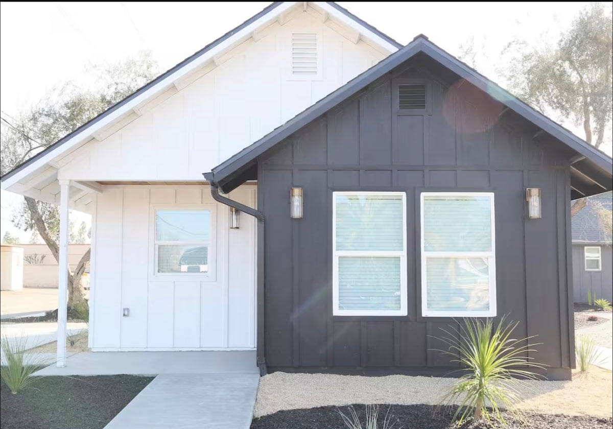 This 400 square foot tiny house was created for comfort and convenience. It is a studio layout with a shared space for living and sleeping but still offers a full kitchen, bathroom (with tub), washer, dryer and dedicated off street parking. A light filled space with vaulted ceilings, it is ideal for both short term and longer term stays. It offers modern, designer decor including white subway tile and open shelving in the full kitchen, high thread count sheets and white duvet on a comfortable mattress and some colorful spanish tile in the bathroom. It feels like a quiet, private retreat, but yet, it's close enough to Old Town Clovis to walk to everything. Come and enjoy! You have complete access to this home. You check in and out independently with this house. But, if anything is needed myself or my co-hosts are available to assist. The house is located in the charming, historic downtown district known as Old Town Clovis. You can easily stroll to nearby shops, restaurants, and festivals. Running and walking trails are also nearby. Big box stores and supermarkets are a few minutes' drive away, and the airport can be reached in 15 minutes. There is easy access to Highway 168 which connects you to attractions such as Yosemite and Sequoia National Parks. This home has one dedicated off street parking spot on the side of the property. Taxis are available and there is a bus stop within a 20 minute walk. But, people typically drive when visiting the area. There is WiFi and a smart TV. You can watch personal subscriptions (Netflix, Roku, Hulu, etc). But there is no cable TV. This is an alley facing home where your "view" will be garages and fences. While there are parks and trails within easy walking distance, there is no yard or outdoor space with this house (with the exception of the small front patio). There is a main house facing the street that is separated by privacy fencing. You access your home via the rear alley behind the main house and have one dedicated parking spot. If you have more than one vehicle you will need to park those additional vehicles on the street.