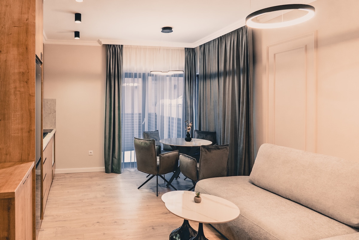 Modernus ir stilingas butas, esantis pačiame Klužo centre, puikiai tinka poroms, turistams ar verslo keliautojams. Jame yra visi patogiai viešnagei būtini patogumai: greitas belaidis internetas, išmanusis televizorius, pilnai įrengta virtuvė, skalbimo mašina ir patogi dvigulė lova. Puiki vieta leidžia greitai pasiekti geriausius miesto restoranus, kavines, muziejus ir lankytinas vietas.