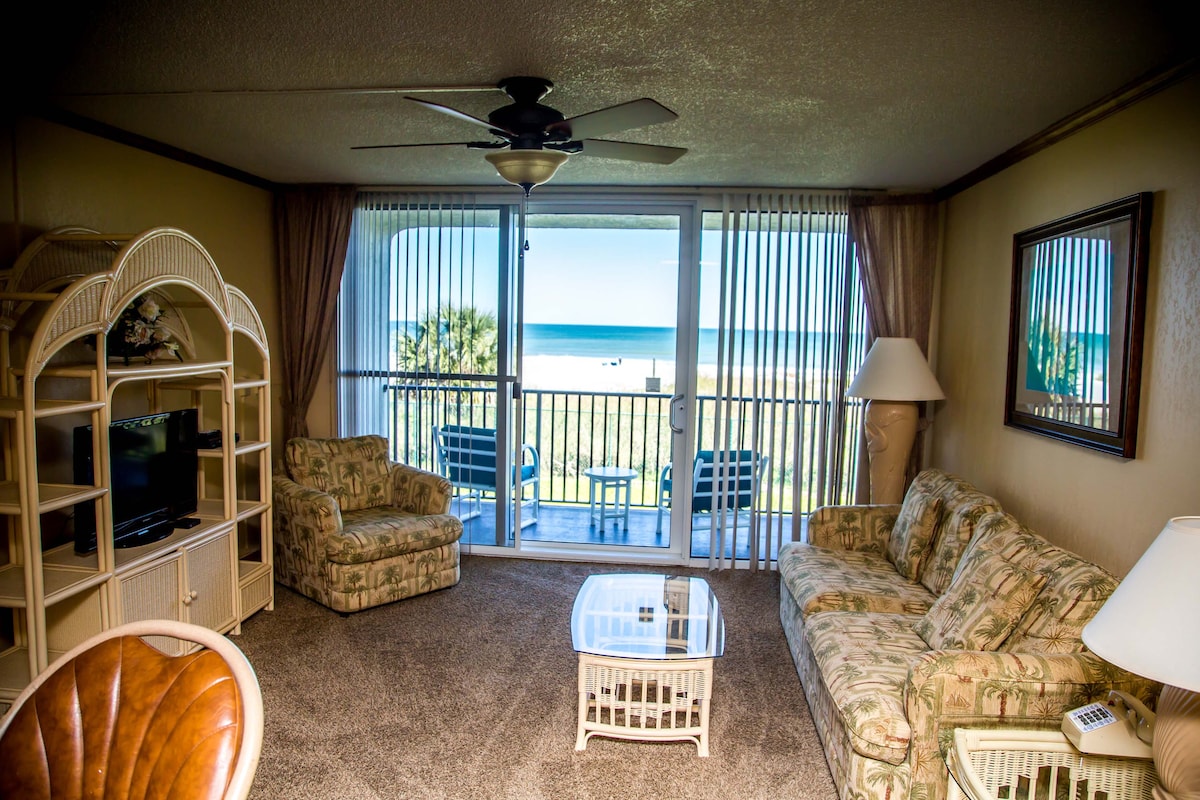 Gražiai dekoruotas erdvus 2 miegamųjų / 2 vonių butas be rūkymo ir augintinių labai pageidaujamame Sandcastles Oceanfront Condominium komplekse, Cocoa Beach. Patogiai įsikūręs A1A, iš jo lengvai pasieksite Orlando tarptautinį oro uostą, „Disney World“, „Universal Studios“, „Port Canaveral Cruise Ships“ ir „Kennedy Space Center“. Mus supa apsipirkimas, maisto prekės ir restoranai. Be šio gražaus kondominiumų, to paties komplekso pirmame aukšte taip pat yra 2 kondominiumai prie vandenyno.