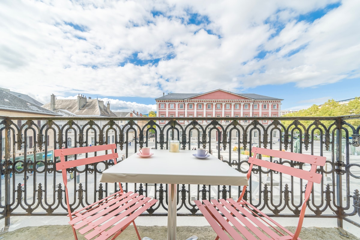 Sveiki atvykę į istorijos kupiną vietą, esančią viršutiniame XVI a. pastato aukšte, garsiojoje Place Saint-Léger. Užkopę į penkis akmeninių laiptų aukštus, patenkate į šviesų butą, kuriame yra 9 langai, iš kurių atsiveria nuostabūs vaizdai į Chambéry stogus, varpą, pilį ir aplinkinius kalnus. Žavinga, tyli ir autentiška vieta, idealiai tinkanti pėsčiomis atrasti miestą ir mėgautis išskirtine aplinka.