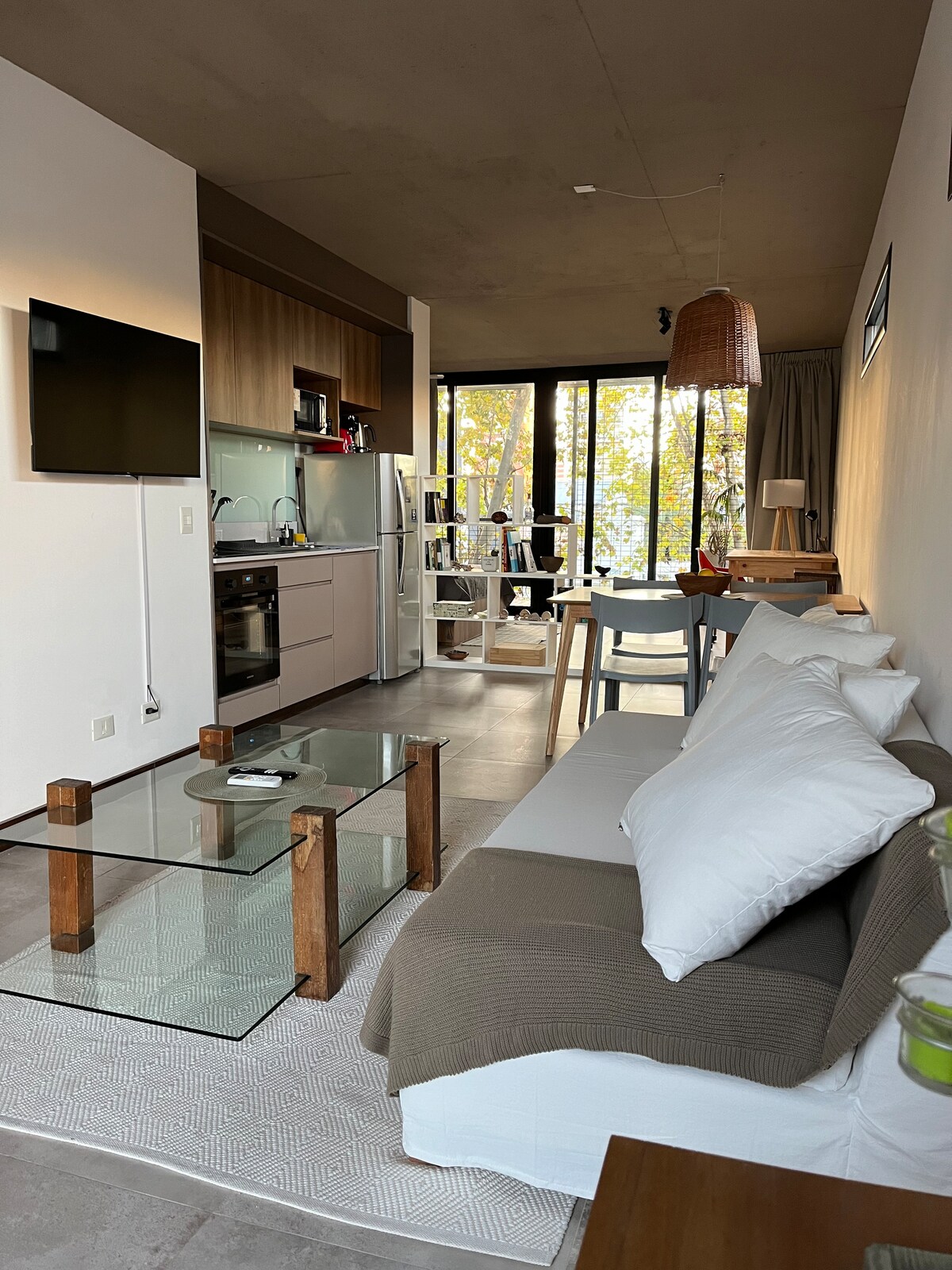 Mėgaukitės šiuo šviesaus dizaino butu, 2 Ambient ( 1 miegamasis + gyvenamasis ) Collegiales. Nuostabus vaizdas ir labai gera vieta, Olleros metro stotis, Mitre linijos traukinys ir keturi kvartalai nuo Avenida Cabildo ir Federico Lacroze. Natūralus apšvietimas su dideliais langais, balkonu su vaizdu į parką. Yra vonios kambarys ir registratūros tualetas. Oro kondicionierius, spinduliuojanti loza, skalbimo mašina, elektrinė viryklė, Nespresso kavos virimo aparatas. Puikiai tinka trumpalaikėms ir ilgalaikėms viešnagėms!