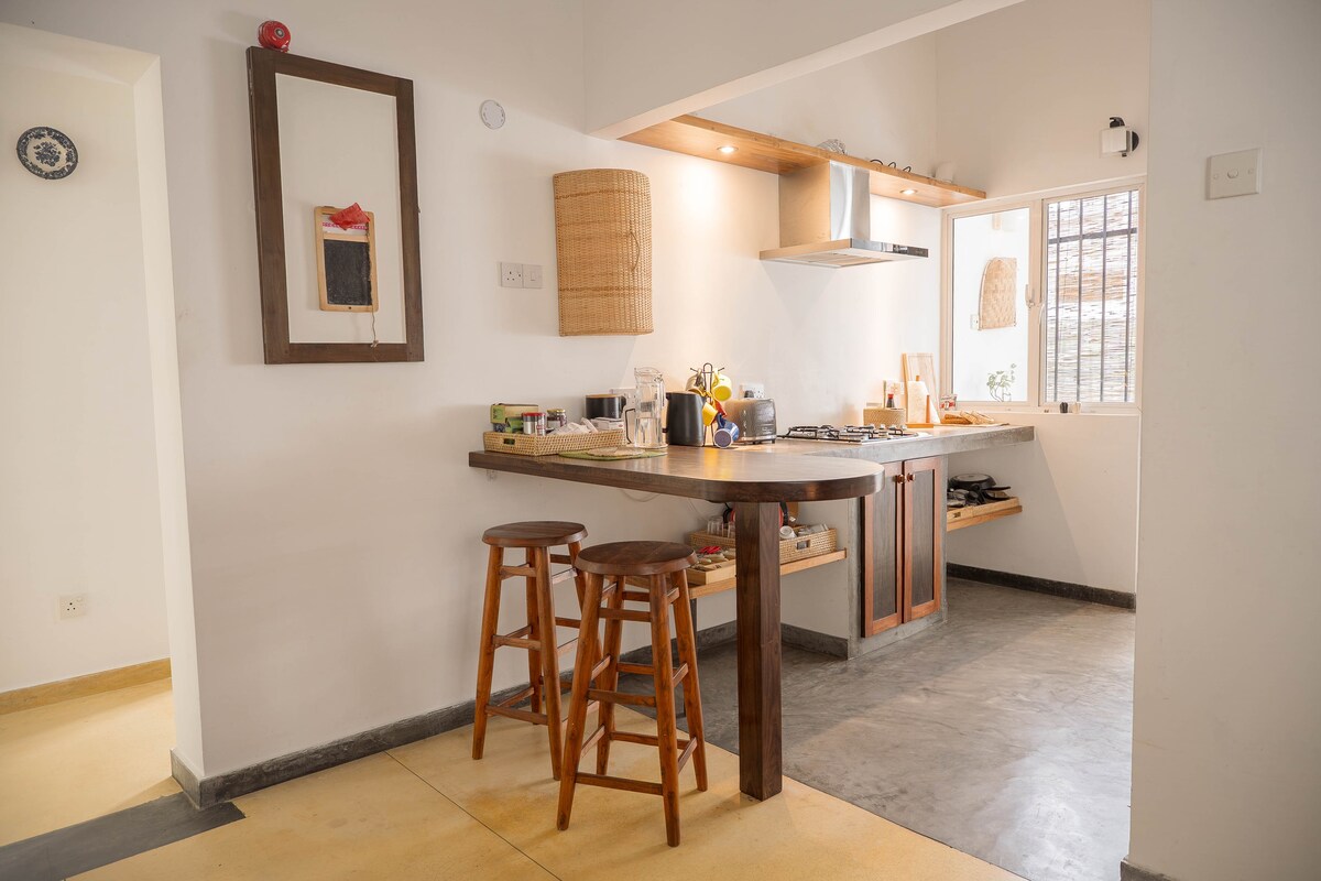 Pasilikite prie jūros / Butas, paplūdimys, traukiniai ir miesto šurmulys! Atsibuskite su vaizdu į vandenyną ir pravažiuojančių traukinių garsais šiame jaukiame, vėjuotame bute Kolombe 6. Vos keli žingsniai nuo paplūdimio ir geležinkelio stoties su maisto aikštelėmis, Jaffna ir indiška virtuve, chai vietomis, parduotuvėmis ir visą parą veikiančiais prekybos centrais. Pasivaikščiokite Marine Drive saulėlydžio metu arba sėskite į traukinį kaip vietiniai! Galimi nebrangūs įkainiai, ekskursijos po salas ir paėmimas iš oro uosto – viskas, ko reikia tobulai viešnagei Kolombe!
