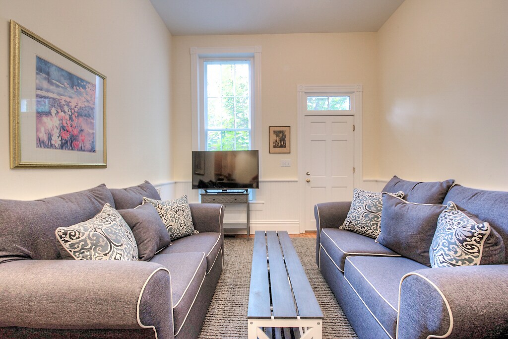 Šis istorinis kalkakmenio namas, esantis priešais gražų Chimborazo parką, datuojamas 1902 m. Visame saulės užtvindytame viršutiniame aukšte yra du miegamieji, virtuvėje ir vonios kambarys. Vienete taip pat yra 56colių išmanusis televizorius ir, jei reikia, dvi rašomojo stalo zonos. Reikia skalbti krūvą skalbinių? Jokių problemų, vienoje skalbyklėje/džiovyklėje yra beprotiška. Bendra priekinė veranda su rokeriais ir parko vaizdais, ir bendras galinis kiemas siūlo papildomus socialiai draugiškus būdus, kaip pasivaikščioti.