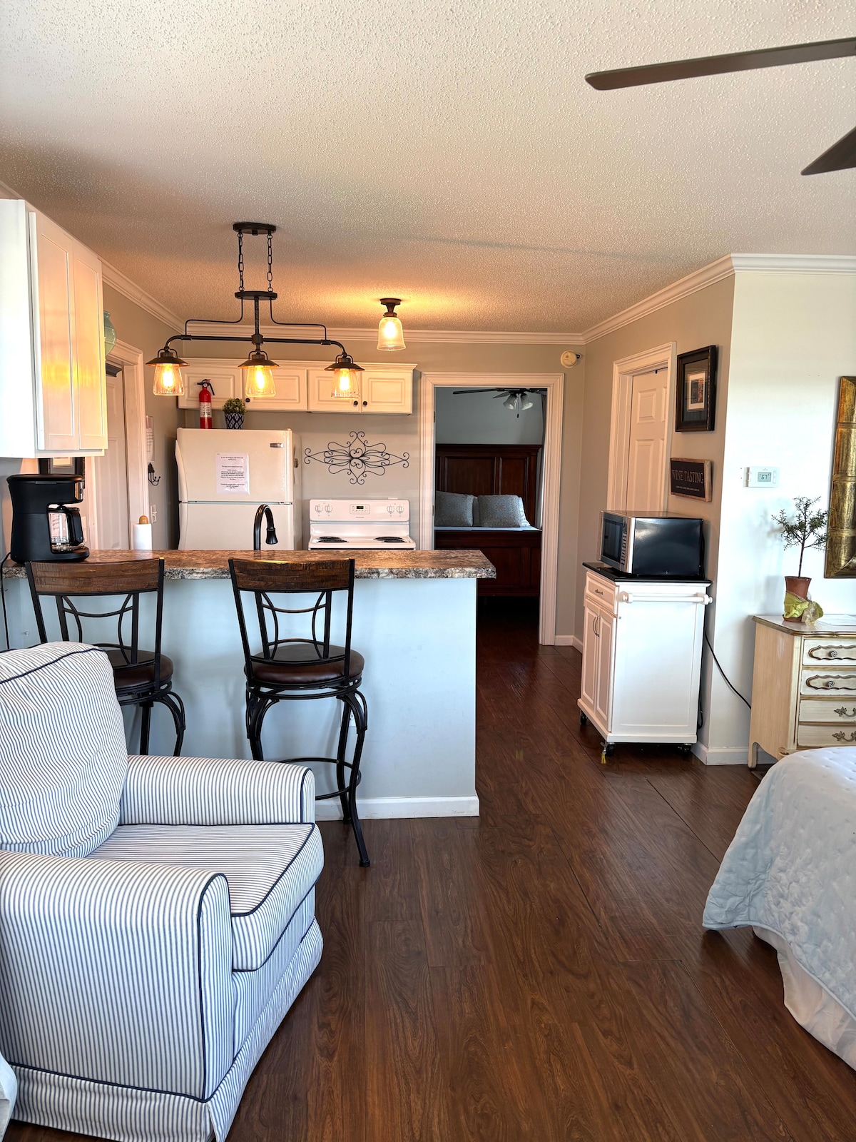 Ši įsimintina vieta nėra įprasta. Šiame mikroname yra visas komfortas, reikalingas trumpalaikei ar ilgalaikei viešnagei. Andres kotedže yra visa virtuvė su visais jums reikalingais patogumais! Priekinė veranda ir šoninis denis atsipalaiduoti ir stebėti gražų saulėlydį! Šiame mikroname, esančiame vestuvių vietoje, atsiveria tokie vaizdai kaip niekas kitas! Mikroname yra studijos tipo miegamasis su lova ir lova po ja ir atskiras miegamasis gale su dvigule lova.