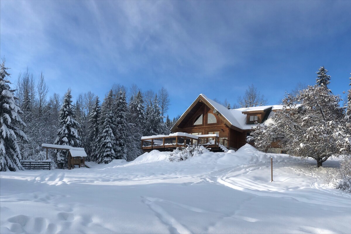 Sveiki atvykę į mūsų namus; „The Lodge at The Lazy Elk“, kuris kurį laiką gali būti jūsų namai! Įsikūręs Blaeberry slėnyje, yra jūsų labai ramus ir erdvus 3500 kv. pėdų rąstinis kalnų namelis, pastatytas 16 akrų privačioje miškingoje vietovėje, iš kurios atsiveria nekliudomi kalnų vaizdai. Padarykite ilgalaikius prisiminimus su draugais ir šeima, mėgaukitės visa veikla lauke ir būkite apsupti gamtos apsuptyje arba tiesiog atsipalaiduoti namuose sūkurinėje vonioje ar erdvioje gyvenamojoje erdvėje ir mėgaukitės vaizdais.