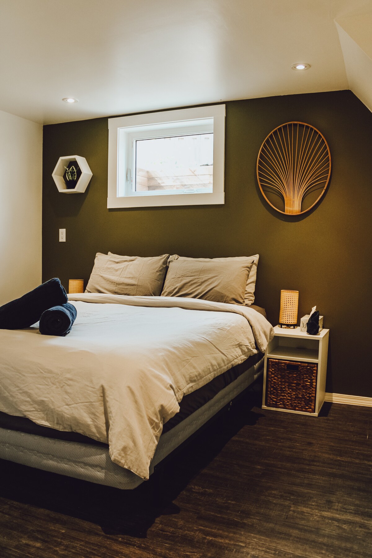 Sveiki atvykę į jaukią kalnų bazę Goldene, Britų Kolumbijoje. Šis privatus 3 miegamųjų, 1 vonios kambario apartamentas yra puiki vieta atsipalaiduoti po Uolinių kalnų tyrinėjimo. Mėgaukitės mūsų malkomis kūrenama kedro pirtimi, kuri yra mėgstamiausia svečių po slidinėjimo ar žygių. Esate ramioje vietoje, vos už 4 minučių kelio nuo centro, už 7 minučių pėsčiomis iki maisto prekių parduotuvių ir už 18 minučių kelio iki Kicking Horse kalnų kurorto. Apartamentai yra patogūs, erdvūs ir idealiai tinka šeimoms, poroms ar mažoms grupėms, ieškančioms ramios ir patogios viešnagės.