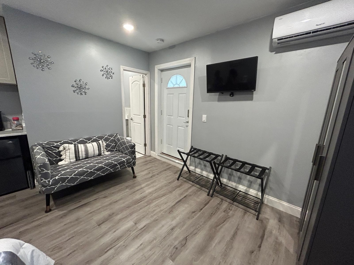 Jauki privati studija vos už 5 minučių kelio nuo Orlando tarptautinio oro uosto (MCO) ir netoli Disnėjaus, Universal ir pagrindinių lankytinų vietų. Ši studija yra prijungta prie vienos šeimos namų, bet yra visiškai privati, su atskiru įėjimu ir nemokama automobilių stovėjimo aikštele. Mėgaukitės atviru išplanavimu su patogia karališko dydžio lova, virtuvėle šiltiems patiekalams, greitu belaidžiu internetu ir ramia erdve, puikiai tinkančia verslo kelionėms, poilsiui ar atpalaiduojančiai viešnagei Orlande.