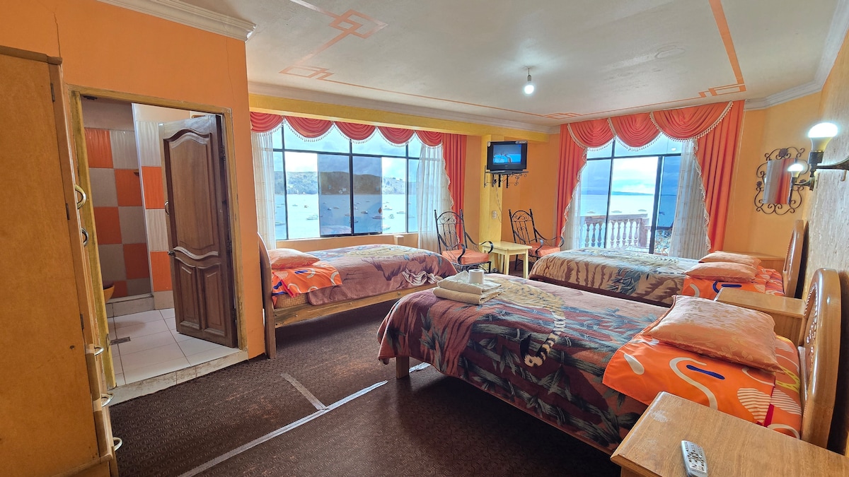 Šeimos kambarys su vaizdu į Titikakos ežerą