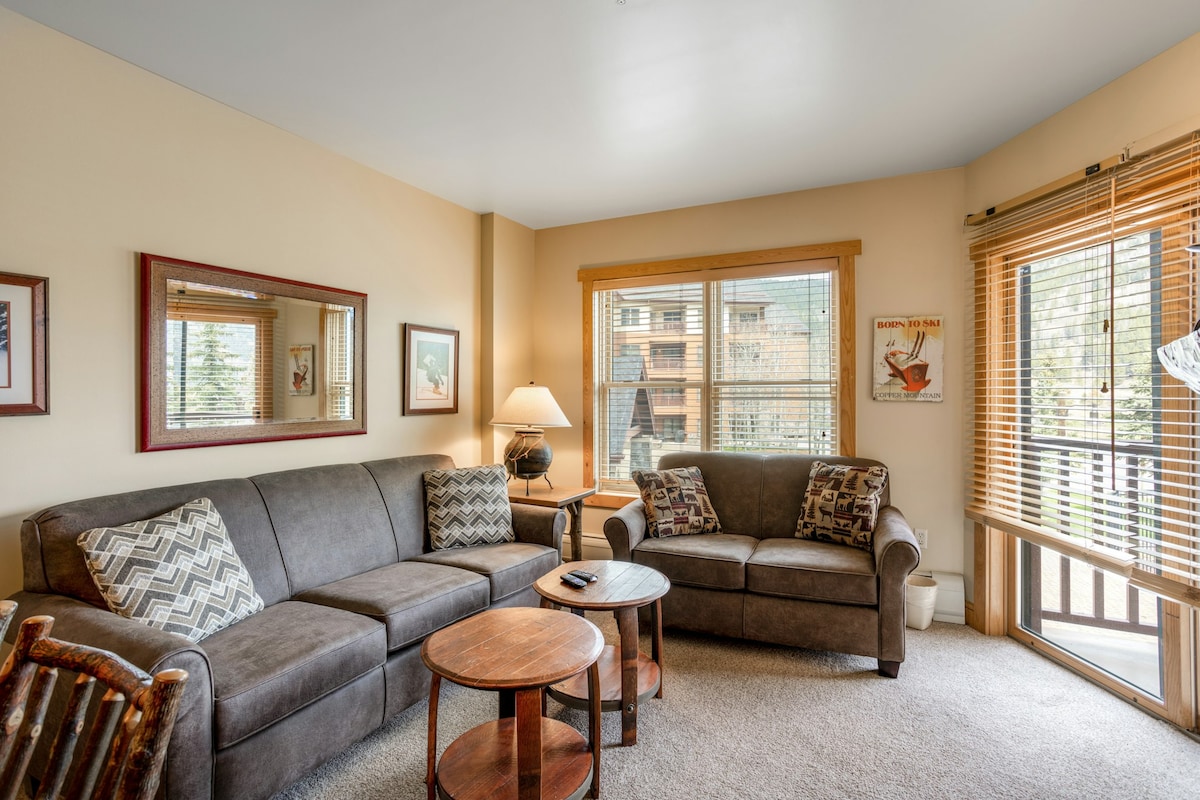 Beautifully updated 2 bedroom/2 bathroom (sleeps 6) main level unit in the Copper Springs Lodge in the heart of Copper's East Village. Complex has hot tubs, sauna, fitness room, elevator & garage. Options to be active are infinite, as are quiet spaces to enjoy nature's beauty. In the winter, ski on/off, where you are only 100 yards the Super Bee Lift, Copper Station, Tubing hill & kids play area. In the summer, enjoy a hike or test your swing at Copper Creek golf course right outside your door.