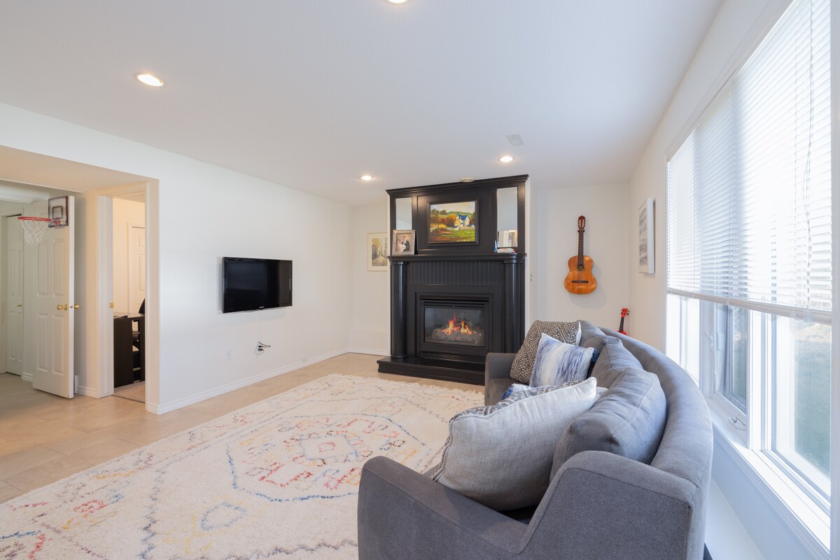 Visiškai naujas, pilnai įrengtas 2 miegamųjų apartamentai su virtuve. Privatus įėjimas su raktu/rugpjūčio spyna, nemokama automobilių stovėjimo aikštelė gatvėje. Židinys, išmanioji televizija, nemokamas belaidis internetas, skalbyklė/džiovyklė apartamentuose, indaplovė, visa vonios ir miegamojo patalynė bei patalynė. Atstumas pėsčiomis iki didelio prekybos centro, laisvalaikio centro (baseino ir bibliotekos), upės, parkų ir maisto prekių parduotuvių. Oro uostas ir miesto centras už 10 minučių kelio. Švaru, be dūmų, vaikai priimame.