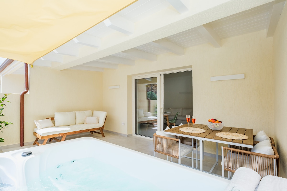 Esclusivo villino a soli 7 km da Olbia e dall'aeroporto Costa Smeralda inserito nel suggestivo scenario della Marina Protetta di Tavolara. Il patio privato ospita una vasca idromassaggio riscaldata accanto ad una doccia esterna con acqua calda inserita nel verde. Un angolo di charme dedicato al relax a 600mt dalla spiaggia Marina Maria amata dai surfisti, a pochi minuti da Capo Ceraso e dalla caraibica spiaggia di Porto Istana. Ristoranti, localini e servizi a pochi passi per un comfort totale