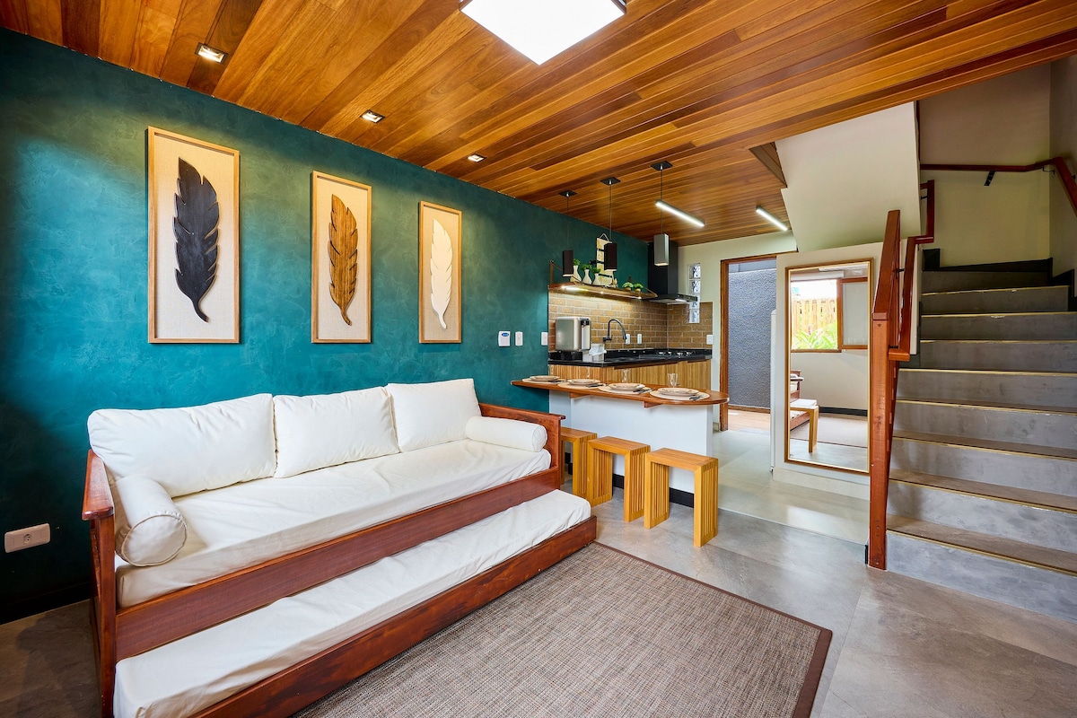 Casa completa em terreno paradisíaco de 7.000m² com outras 9 casas para casal independentes e privativas. A Casa Lótus possui quarto amplo, cozinha, banheiro espaçoso e bem iluminado com chuveiros a gás, e varanda espaçosa com vista para o mar e para o jardim ornamental. Além de oferecer cozinha completíssima, com todos os equipamentos necessários a casa conta ar condicionado, Smart TV, internet wifi, aquecedor a gás e secador de cabelo. É uma experiência de imersão com conforto de primeira!