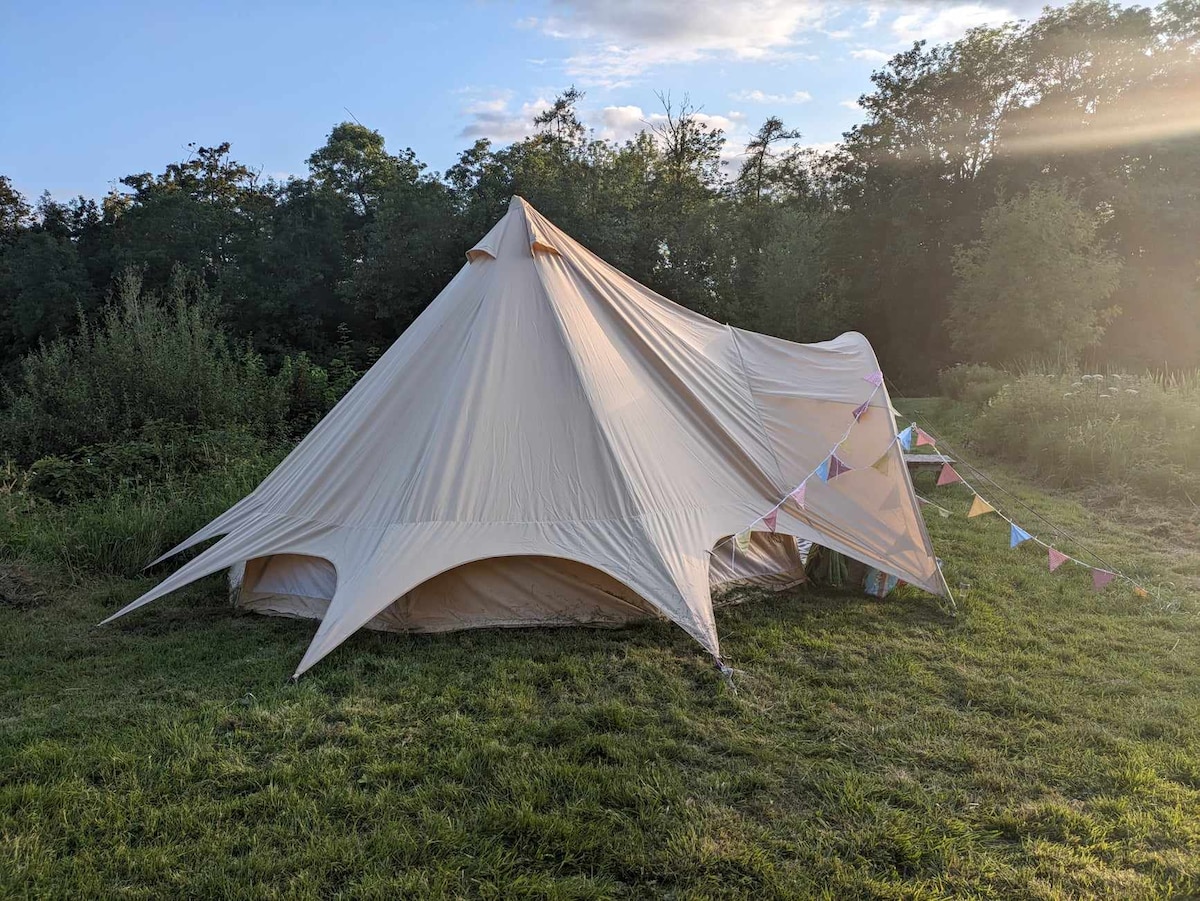 Visiškai izoliuota varpinė palapinė, pastatyta atskirai dideliame aptvertame lauko plote, Visos WC ir virtuvės patalpos yra privačios ir skirtos tik jums ir jūsų šeimai. Jokio bendrinimo su kitais. Vienuolyno klėtis yra vos už kelių mylių nuo skaldytų norton netoli Heythrop, mes esame nedidelis ūkis lizdas beveik slėnio apačioje. Mūsų varpinė palapinė yra puikus pabėgti į ramybę ir mes įrengėme stovyklą, kad jums nereikės, tiesiog pasirodyti ir atsipalaiduoti su viskuo, ko jums reikia pateikti.