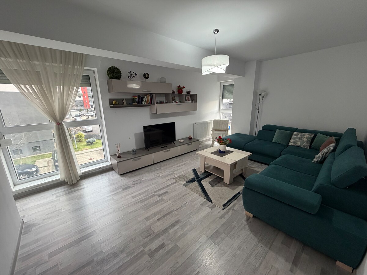Sveiki atvykę į jaukią poilsio vietą Brašove! Šiame pilnai įrengtame 1 miegamojo bute dera komfortas ir stilius, puikiai tinkantys atsipalaidavimui. Vos už 15 min. kelio nuo miesto centro ir už 5 min. kelio nuo prekybos centro „Coresi“, netoliese yra daug prekybos centrų. Mėgaukitės natūraliomis tekstūromis, šiltu apšvietimu ir viskuo, ko reikia potyriui namuose. Idealiai tinka poroms, pavieniams keliautojams ar šeimoms (sofa-lova svetainėje ir vaikų parkas šalia pastato).