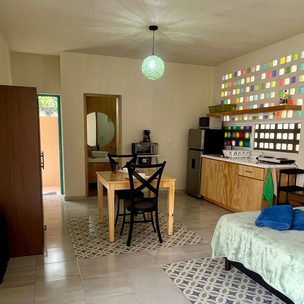 Visiškai įrengta studija mažame, privačiame 8 studijų komplekse, kurios visos sukurtos tam, kad jaustumėtės kaip namie. Įsikūręs Playa del Carmen miesto centre, tik 6 kvartalai nuo garsaus “5th Avenida” ir 7 kvartalai nuo gražių Karibų jūros paplūdimių. Plius: didelis prekybos centras už vieno kvartalo, bankai, vaistinės, restoranai vietinio maisto aplink. Turime nemokamą automobilių stovėjimo aikštelę. Sveiki atvykę!