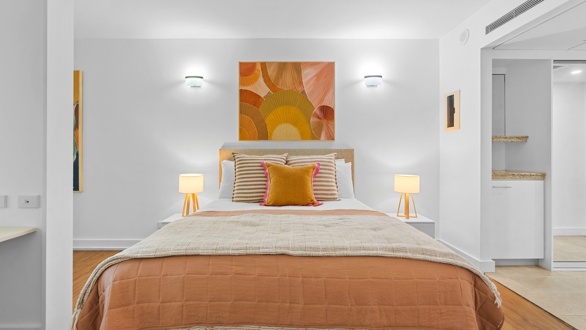 Vieno miegamojo prabangus butas Uosto pagrindinėje gatvėje, už kelių žingsnių nuo visų geriausių restoranų ir kavinių, parduotuvių, prekybos centrų, butelių parduotuvių, kepyklėlių, Port Daglaso turgaus ar paplūdimio! Mėgaukitės patogumais, kuriuos suteikia ne tik centrinė vieta, bet ir kurorto šildomi baseinai, liftas į jūsų kambarį ir išskirtiniai šio buto patogumai - greitas belaidis ryšys, indaplovė, itališki prietaisai, kavos aparatas, rėmo televizorius, Bose garsiakalbis ir karališko dydžio lova su vaizdu į Daintree