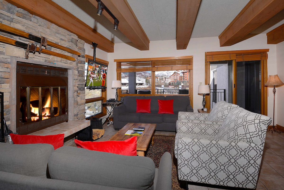„The Lodge at Mountaineer Square“ yra kalno papėdėje, CB Village. Tai naujausias ir prabangiausias pastatas ant kalno. Erdvus, į šlaitą atsigręžęs 4 aukšto butas su liftu. Iš čia atsiveria neįtikėtini šlaitų, Butte ir didingų kalnų vaizdai. Paprastas ir elegantiškas dekoras; skalbykla bute; pilnai įrengta virtuvė; šildomas garažas vienai transporto priemonei; naujas didelės spartos WiFi; namelio patogumai, įskaitant slidinėjimo paslaugas, sporto salę, baseiną, kubilą, sausą sauną.