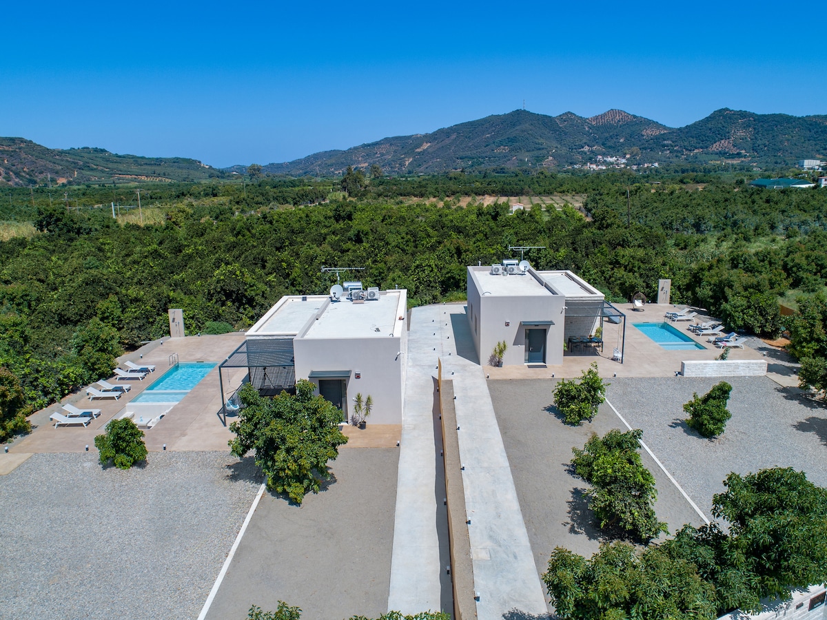 2023 m. renovuota vila yra Kournas paplūdimio komplekso dalis, iš kurios atsiveria nuostabus vaizdas į jūrą, kalnus, sodus ir baseinus. Jo baseinu dalijamasi su 5 kitais būstais, kurie retai užimami. Begalinis, auksinio smėlio paplūdimys Georgioupolis yra vos už 800 m nuo viešbučio, o už 2 km yra gilus mėlynas Kourna ežeras. Mažiau nei už 30 minučių kelio automobiliu galite pasivaikščioti vaizdingomis Retimno ar Chanijos senamiesčio alėjomis.