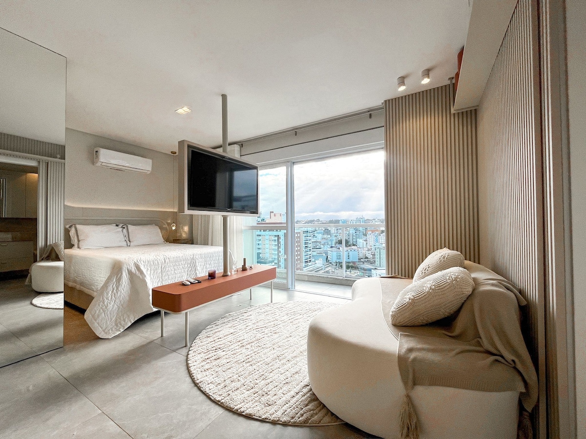 Apresento a você um studio moderno, prático e totalmente mobiliado, localizado no HUB Smart Home, estrategicamente no centro de Criciúma. SOBRE O STUDIO O studio é todo mobiliado, equipado e fica a poucos metros de supermercados, farmácias, lojas, hospitais e restaurantes. Trazendo toda a praticidade e conforto que você procura. SOBRE O HUB O edifício é todo automatizado - feito para Airbnb. Nele você tem acesso à academia, área de coworking 24hrs, lavanderia, mercado autônomo e bicicletário.