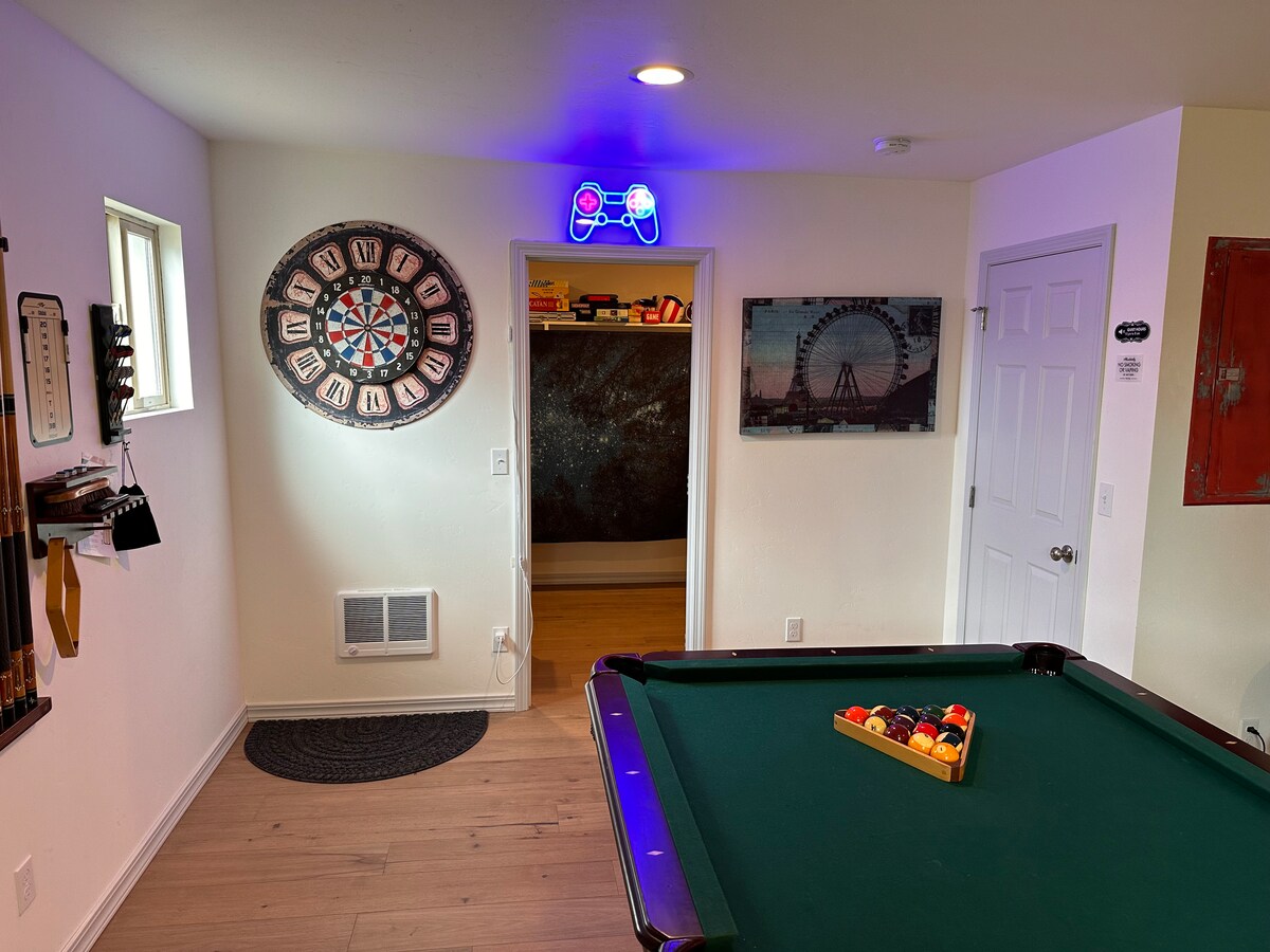 Atraskite centrinio Oregono žavesį šiuose žavinguose Prinevilio miesto centro namuose. Šis žavingas namas, puikiai tinkantis šeimoms ir profesionalams, yra puikioje vietoje netoli restoranų ir parduotuvių. Mėgaukitės žaidimų kambariu su biliardo stalu, smiginiu ir arkadiniais aparatais. Žavėkitės nuostabiais saulėlydžiais ir žvaigždėmis. Patogi vieta tyrinėti Bend, Smith Rock ir Painted Hills. Jūsų išskirtinis nuotykių ir atsipalaidavimo centras.