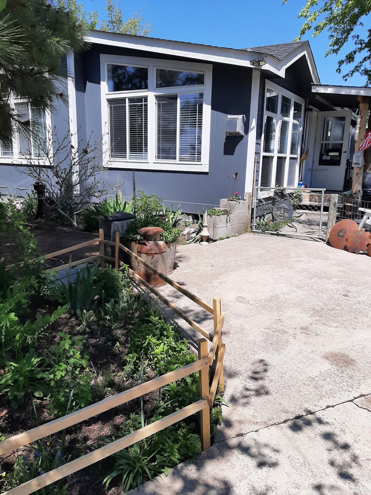 Millers' Misfit Farm welcomes you to the farm. The space was originally built into the house as a mother in law's quarters. There is a separate entrance with porch, full kitchen with pantry, one bedroom with queen sized bed and a walk in closet, one queen hide a bed couch in the living room, and one bathroom with shower. In the yard is a seasonal firepit. The apartment is kept critter free for those of you with allergies. Come stay with us and enjoy the beauty of Central Oregon!