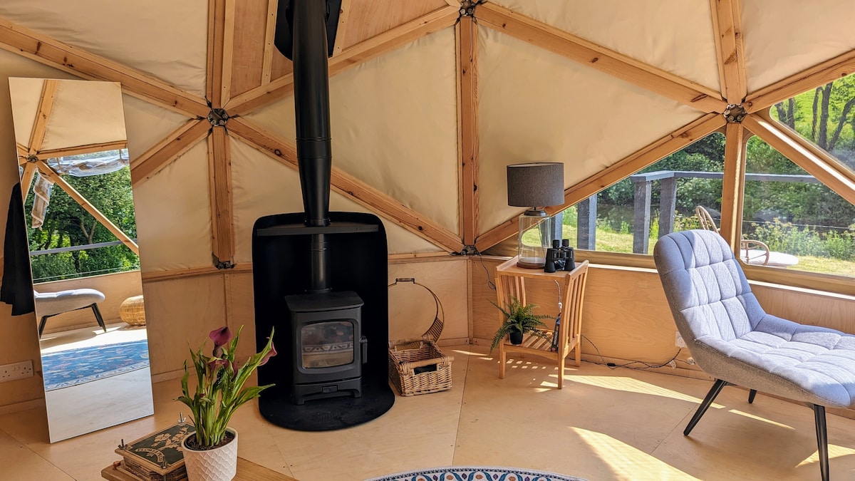 Erdvus geodezinis kupolas, įsikūręs kvapą gniaužiančiame slėnyje. Mėgaukitės privačiu prabangiu kempingu pėsčiomis nuo Woolacombe paplūdimio. Po sunkios dienos paplūdimyje užklupo malkų degiklį ir prisiglaudė su filmu arba tiesiog pažvelkite į žvaigždes, atsipalaiduodami prie savo privataus tvenkinio. **GALIMI ELOPEMENTS IR MIKRO VESTUVĖS ** Atsiųskite man žinutę ir aptarkite 💍💍