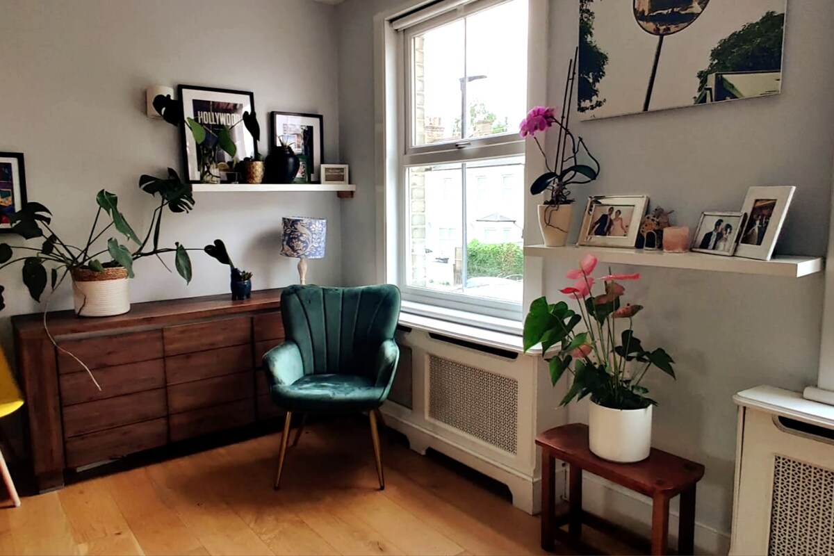 Šis šviesus, stilingas butas pasižymi atsipalaidavusia atmosfera su patogumais namuose ir vietiniu charakteriu. Atsibuskite ir pamatykite nuostabius Londono vaizdus iš savo poilsiavietės viršutiniame aukšte — tai puiki vieta atsipalaiduoti po dienos mieste. 🛌 2 dviviečiai miegamieji, dvigulė sofa-lova, virtuvė, vinilinis grotuvas, išmanusis televizorius, speciali darbo erdvė ir saulėta terasa su valgomuoju. 🍽️ Gyvybinga vietovė su nepriklausomomis parduotuvėmis, restoranais ir barais. 🚞 Artimiausia stotis Crystal Palace Londono tiltas = 25 min. Viktorija = 28 min. Shoreditch = 31 min.