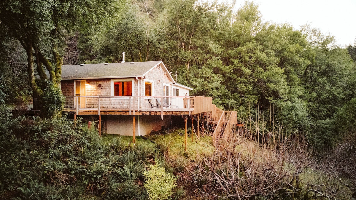 Jūsų privati prabangi trobelė ant upės. Pasimėgaukite 102° karščio sūkurine vonia su vaizdu į vandenį. Naujai suremontuotas su dizainerių akcentais – kuruojamas taip, kad susilietų kaimiškas ir medinis žavesys su šiuolaikine prabanga. Jums patiks mūsų kavos stotelė su prancūziška kava, Chemex, lašinimo aparatu ir elektriniu arba rankiniu pupelių malūnėliu, kad kiekviena diena prasidėtų tinkamai! Laužavietė su mediena ir itin aukšta terasa aplinkui. Čia jūros pakrantė susitinka su laukine PNW atmosfera, tad tai puiki vieta skaitmeniniam detoksikavimuisi, pabėgimui, asmeniniam poilsiui ar šeimos nuotykiui.