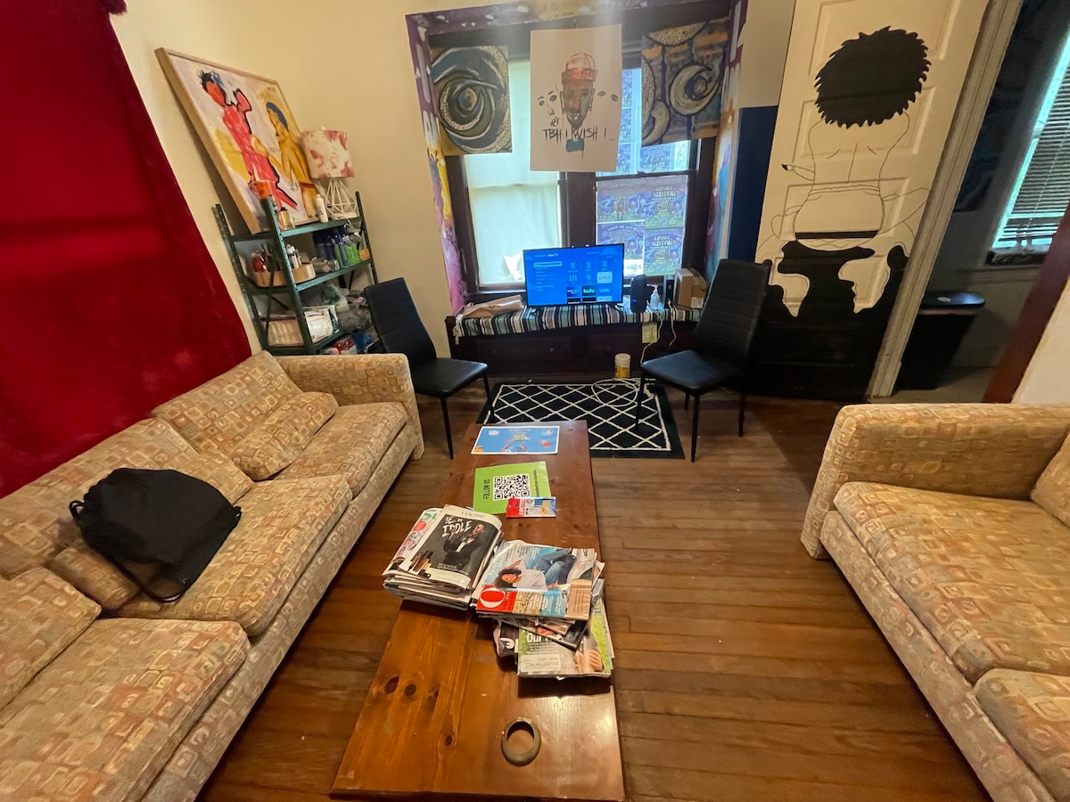 Šis unikalus būstas turi savo stilių. Nuosavybė yra gyvenamasis namas, renovuotas į meno galerijos namą vietiniams kūrėjams, keliaujantiems į arba šiuo metu Klivlande. Erdvėje buvo kuruojami daugiau nei 10 vietinių Klivlando freskų, nes svečiai sukūrė keletą freskų ir temų aplink būstą. Menininko virtuvė su skrudinimo orkaite , panini virimo aparatu , mikrobangų krosnele ir savitarnos kavinės stotimi. Puikiai tinka kūrybiniam išvykai ar meno renginiui!