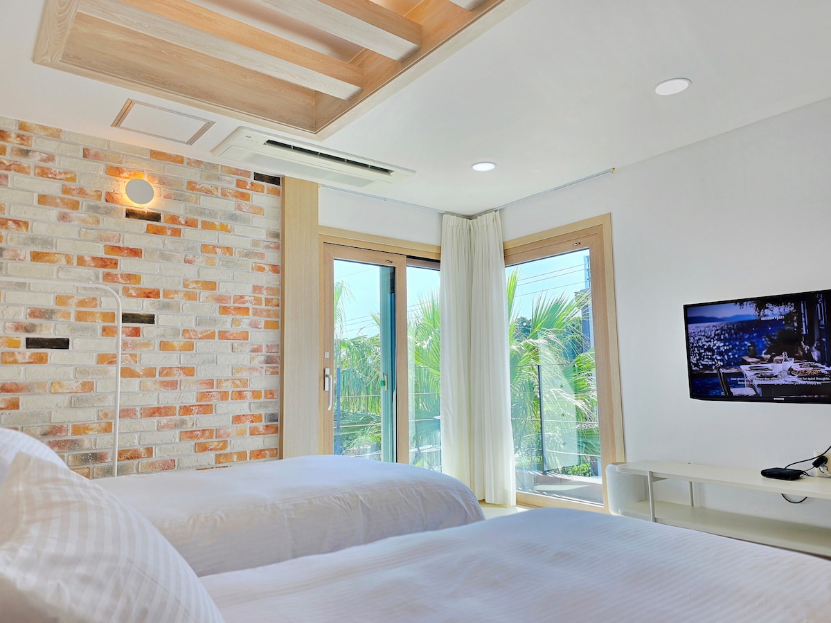 ★ Top quality of cleanliness and sanitation of the room ★ Excellent for solo or couple trip with queen sized bed ★ Private shower room and toilet ★ 4x10M Outdoor shared swimming pool from June to September ★ Easy to get here by airport limousine bus ★ Nearby Olle trail & Jungmun beach for surfing ★ Many nearby local restos ★ Fast wifi in this room included