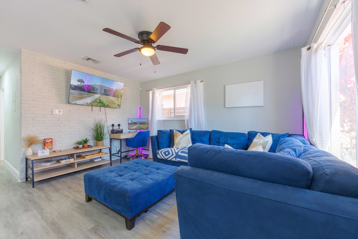 Mūsų namai yra rytinėje Holivudo ežerų pakrantėje, vos už 2 kvartalų nuo nuostabaus Holivudo paplūdimio ir už 3 minučių kelio pėsčiomis nuo miesto centro. Nuostabūs vandens keliai supa mūsų rajoną, puikiai tinkantys pasivaikščiojimams saulėkaitoje. Mūsų namai yra itin švarūs ir atnaujinti. Mėgaukitės didele tvora kieme, baseinu, ping-pong stalu, griliu, dujomis ir pilnai įrengta virtuve. Taip pat mėgausitės mūsų nuostabiais lauko baldais ir 75 colių išmaniuoju televizoriumi, į kurį galėsite transliuoti savo mėgstamas laidas. Puikiai tinka atsipalaidavimui