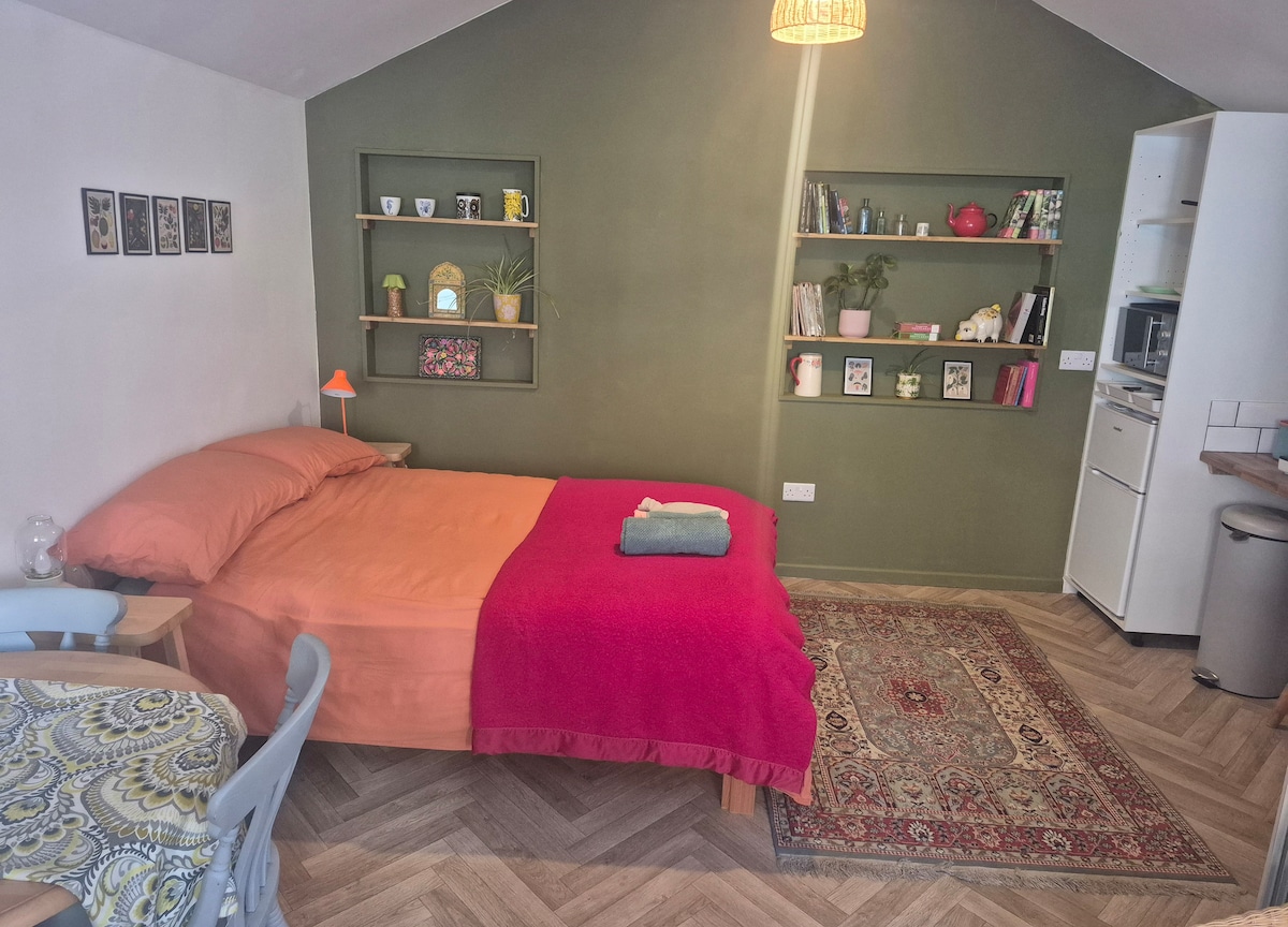Sveiki atvykę į Primrose studiją, atskirą butą ramioje, privačioje vietoje - vos už 2 min. kelio pėsčiomis nuo Totnes centro. Satnav mūsų neras - mūsų patikrinimo kryptys bus ! Gražiai pertvarkyta 2021 m. - su skalūno/medinėmis grindimis, grindų šildymu, malkomis kūrenama virykle, vonios kambariu su vonia ir dušu bei atskira pilnai įrengta virtuvė. Studija turi savo priekines duris, o lauke yra atskira vieta automobiliui. Puikiai tinka poroms, mes taip pat priimame šeimos augintinius.