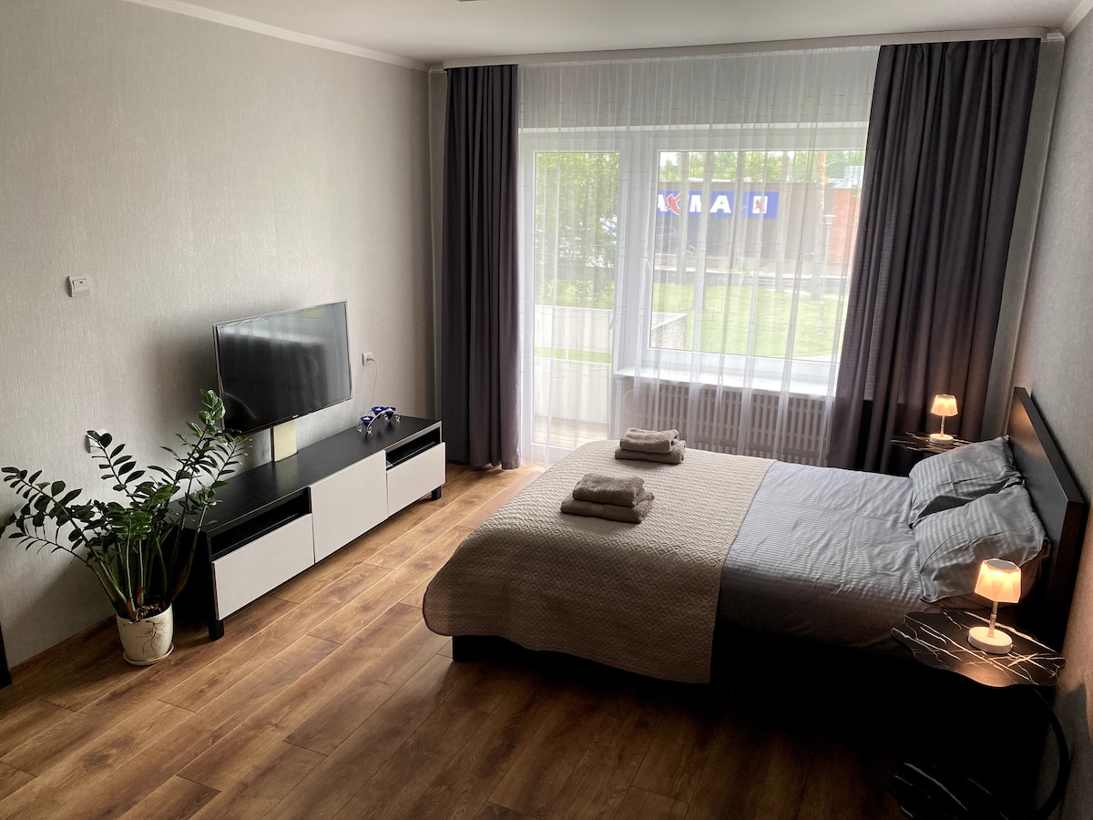 Jaukus vieno kambario butas parko zonoje miesto centre. Pirmas aukštas ir didelis balkonas yra privalumas patogiam privažiavimui ir kaimo gyvenimo jausmui. Pro langus atsiveria nuostabus vaizdas į mišką, o kitoje kelio pusėje – ežeras. Netoliese yra centrinė aikštė, kurioje vyksta visos miesto šventės. Bute yra viskas, ko reikia patogioms verslo kelionėms, atostogoms, šeimos atostogoms su vaikais. Patogus savarankiškas įsiregistravimas ir išsiregistravimas.