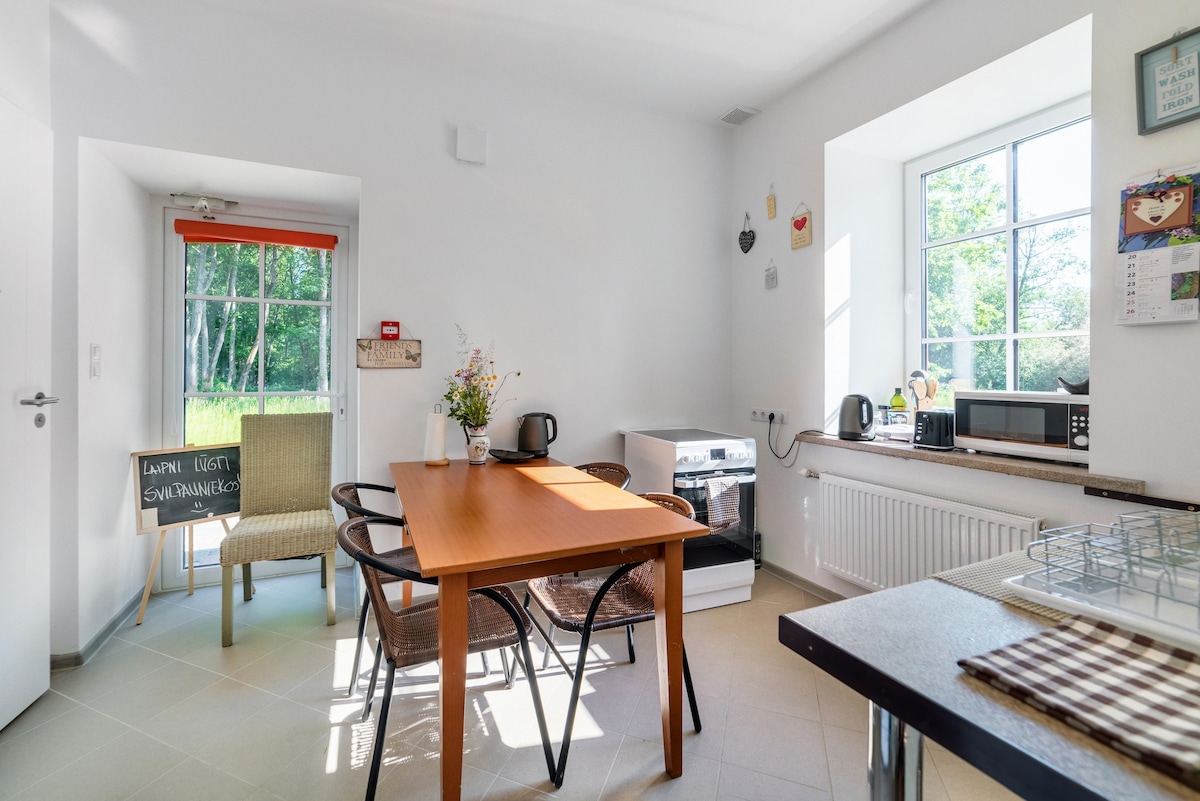 Jaukus privatus poilsio namas su aptvertu kiemu – nuomojamas visas namas Erdvus ir patogus poilsio namas, skirtas tik privačiai viso būsto nuomai. Sodyba puikiai tinka šeimoms arba draugų grupėms. Būstas yra ramioje vietoje, netoli gamtos, vos už 10 min. kelio nuo Daugpilio miesto centro ir už 5 min. kelio nuo istorinės Daugpilio tvirtovės. Ežeras su paplūdimiu yra už 500 metrų, o netoliese esančiais miško takais galima pasivaikščioti ir pasivažinėti dviračiais.