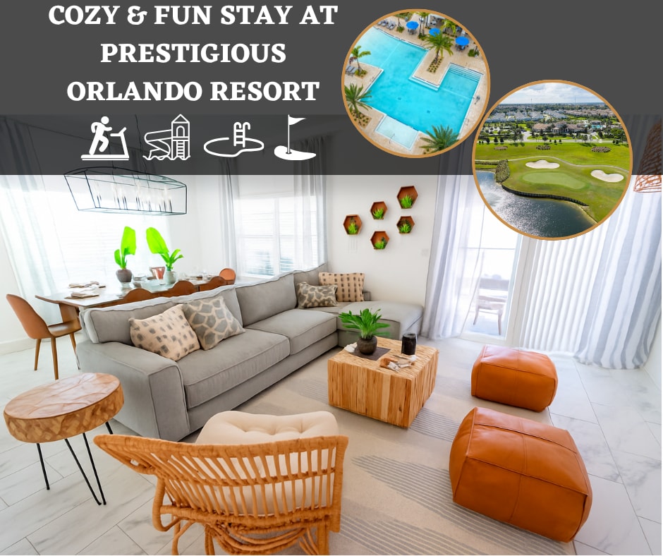 Unable to book this house? Don't worry! Check my profile for similar homes that might suit your needs. WE HAVE 24/7 CUSTOMER SERVICE! Tired of visiting the parks every day? Step inside of this beautiful 2,270 sqft house and discover a private BBQ, pool and game room specially designed to entertain your family and keep the fun going. Enjoy the resort's clubhouse with a restaurant, pool with water slide, spa, lazy river, gym, playground and a tennis court. Experience the vacation of a lifetime!