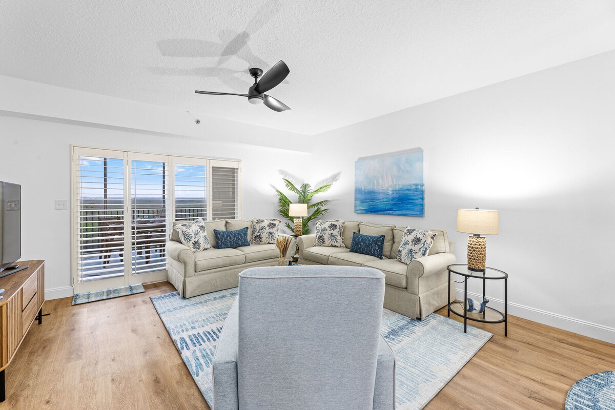ĮSPŪDINGI VAIZDAI Į PAPLŪDIMĮ! Prabangus renovuotas kondominiumas + panoraminiai vaizdai į vandenyną. „Master king suite“ privatus balkonas prie vandenyno + 2-as miegamasis ir vonia = 2 dvigulės lovos. NAUJA pilnai įrengta virtuvė! Tiesioginė prieiga prie nepriekaištingo paplūdimio be vairavimo su minkštu/tvirtu smėliu, šildomu baseinu prie vandenyno. Aukščiausios kokybės šeimai tinkamas poilsis - be dūmų ir augintinių. Pabuskite į nuostabius Atlanto saulėtekius! Tranquil Daytona Beach Shores pabėgimas - užsisakykite atpalaiduojančias ir smagias atostogas paplūdimyje! Skoningai papuošta Kalėdoms!