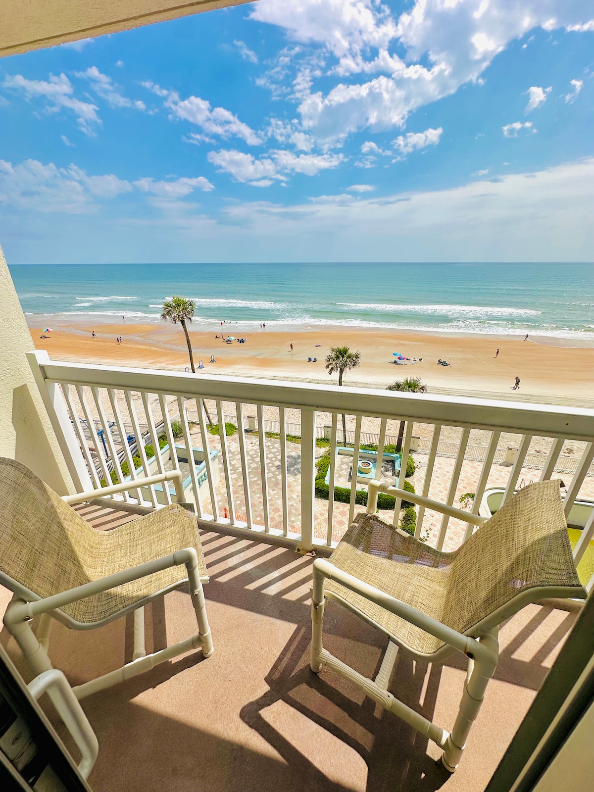 Daytona Beach Fl Stay in a Gorgeous Beautiful "PRESIDENTIAL SUITE" See/Hear the Ocean from your bed Open Private Direct Oceanfront Balcony STAY ON THE BEACH + At Prime Location WALK to Restaurants Live Music Stores Shops Bars Free Splash Water Park Grocery Stores Restaurant Etc Spacious Hotel Room 1 Cal King Comfortable Bed •1 Queen sofa bed New Kitchen Appliances 75in Tv Free WiFi • Indoor Pool • Outdoor Pool • Spa • Fitness Center / Gym • Sauna Currently Outside Deck w/new improvements