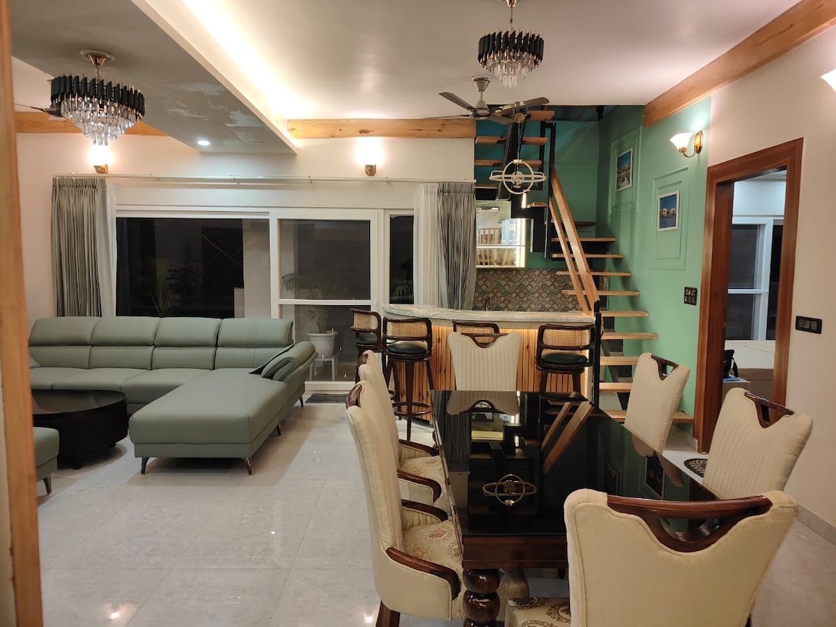 Įsikūręs aukščiausiame prestižinio Dehraduno rajono – Rajpur kelio – taške, šis prabangus mansardinis butas siūlo ramybę, gryną kalnų orą, kurio AQI lygis yra mažesnis nei 50, ir kvapą gniaužiančius Mussoorie kalvų vaizdus – tai puiki privati poilsio vieta virš miesto. Jame yra erdvios ir elegantiškos gyvenamosios erdvės su gurmaniška virtuve ir poilsio kambariu, keturi pagrindiniai miegamieji su privačiais balkonais, stogas ir greitaeigis liftas. Jis sukurtas patogiai, privačiai ir ramiai viešnagei šalia gamtos.