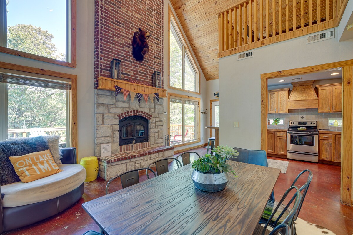 Įsivaizduokite, kad stebite ryškų saulėlydį virš Didžiojo Cherokees ežero, gurkšnojate stiklinę skanaus vyno po mirksinčiomis šviesomis ir mėgaujatės geru pokalbiu su dar geresne kompanija. Būtent tai gausite užsisakydami šį būstą atostogoms prie ežero. 4 miegamųjų, 2 vonios kambarių name yra prabangus dekoras, pilnai įrengta virtuvė, 3 išmanieji televizoriai, 3 gražūs deniai ir tiesioginė prieiga prie ežero didelėms grupėms ir šeimoms, norinčioms derinti laisvalaikio gyvenimo būdą su puikia gamta.