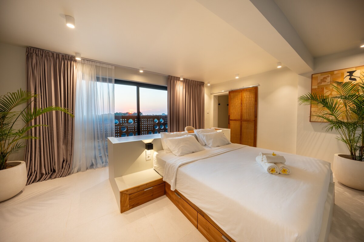 Sveiki atvykę į savo naujus namus Sanūre! Šis nuostabus 3 miegamųjų butas su didžiuliu bendru baseinu yra 6 butų komplekso, siūlančio modernų gyvenimą vos už 8-10 minučių kelio nuo Sanur paplūdimio, dalis. Puikiai tinka šeimoms ir draugams ilgalaikėms viešnagėms. Lengva pasiekti populiarius Indonezijos ir Vakarų restoranus, masažo salonus ir būtiniausių prekių parduotuves, viskas, ko jums reikia, yra po ranka. Patirkite tobulą komforto ir patogumo derinį šioje energingoje bendruomenėje!